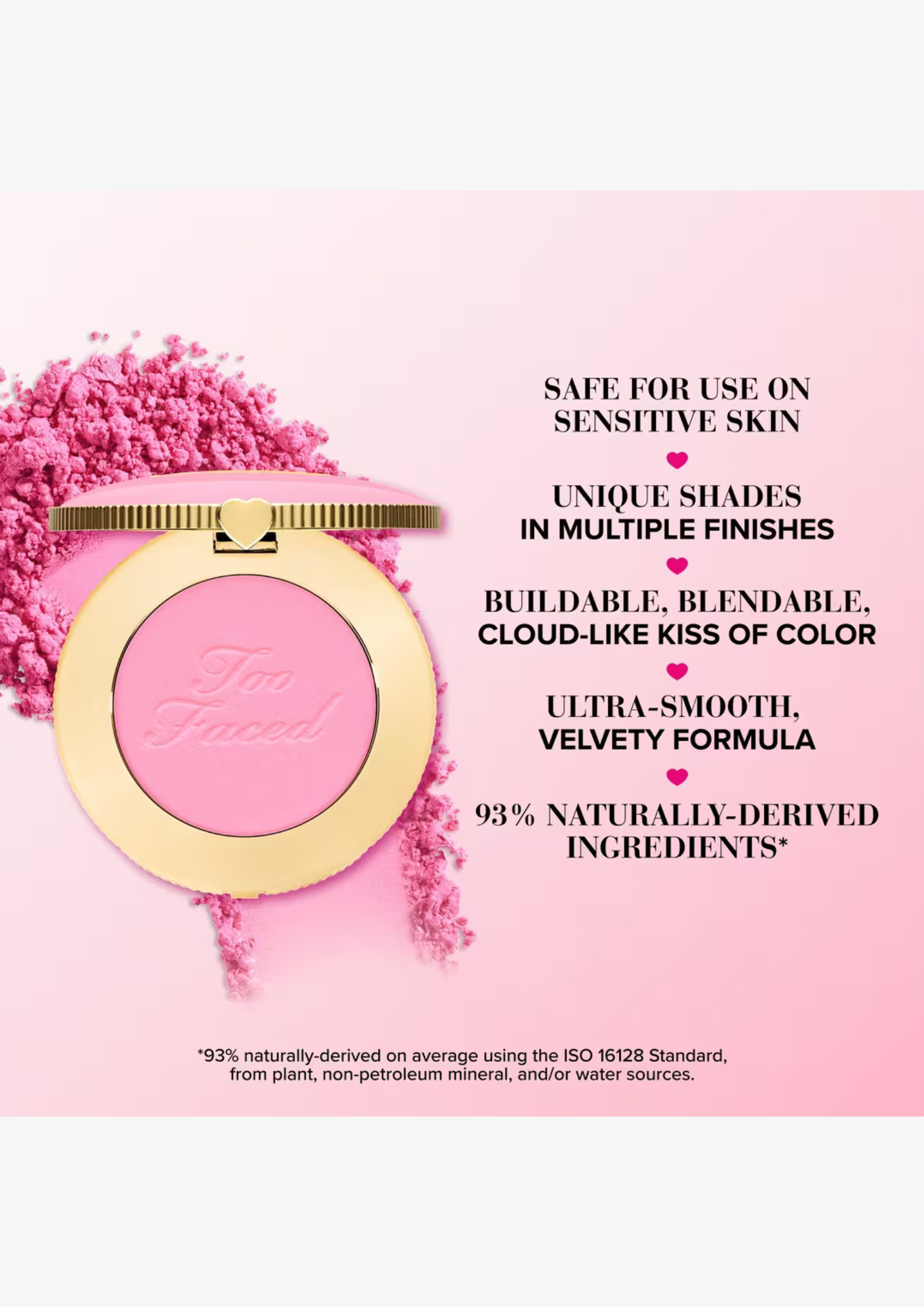 93% naturally-derived ingredients* Safe for use on sensitive skin Ultra-smooth, velvety formula Buildable, blendable, cloud-like kiss of color Smells Like a Tropical Beach! """"""""